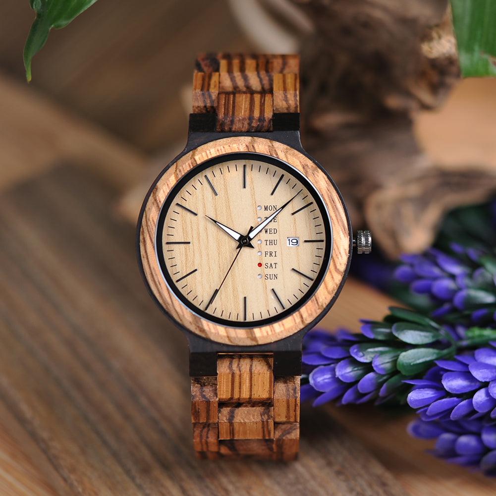 Un reloj de madera es ideal para la persona perspicaz que aprecia piezas únicas. Manténgase elegante y puntual con este reloj de madera artesanal, que cuenta con una banda de madera ajustable que resalta su hermoso grano natural. El reloj también viene con un cilindro de bambú hecho a mano para un toque especial
