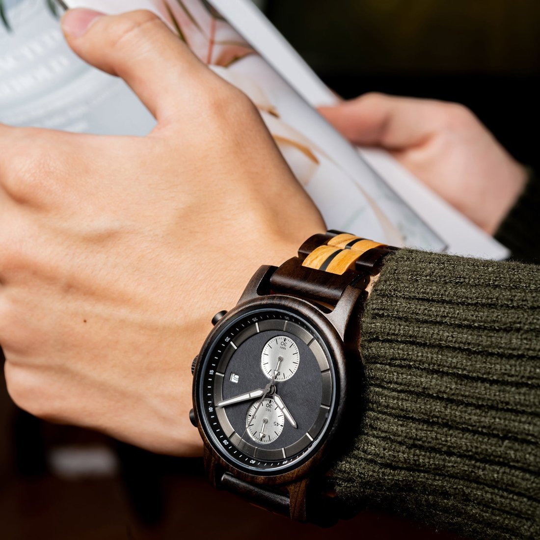 A wood watch is perfect for the discerning individual who values one-of-a-kind pieces. This elegant update on the chronometer will surely be a conversation piece whenever you use it. Featuring an adjustable wooden band that showcases its beautiful natural wood grain. It also comes with a handmade bamboo cylinder.