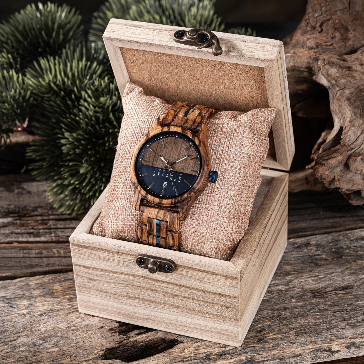 The Parallel Agenda Wood Watch Blue Dial