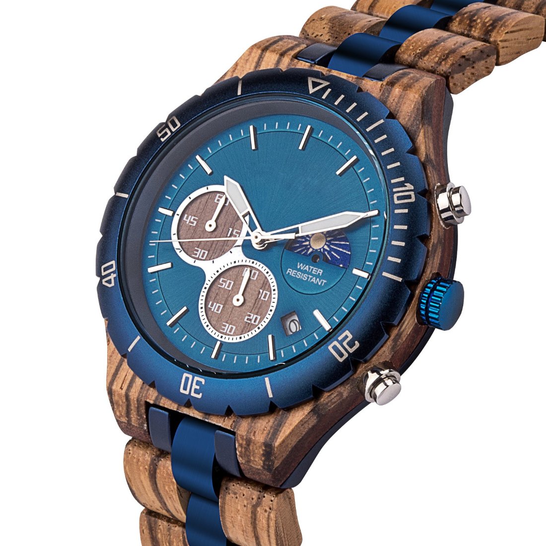 The Weather Chronometer Wood Watch Blue Dial