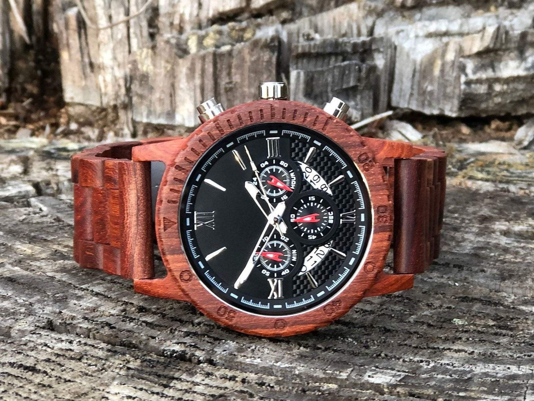 This wooden watch is ready to make a statement! Dulce | Red wood watch is the perfect way to show someone you care with its wooden frame. No two are exactly alike, making it the go-to choice for unique gifts. Combining style, sentiment, and sustainability in one, it's a gift that keeps on giving.